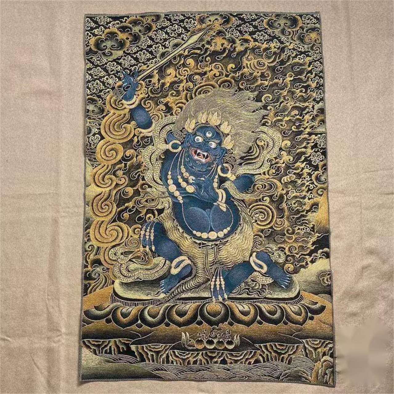 このチベットタンカ刺繍は、チベット民族の伝統を受け継いだ職人による手作りの一品。