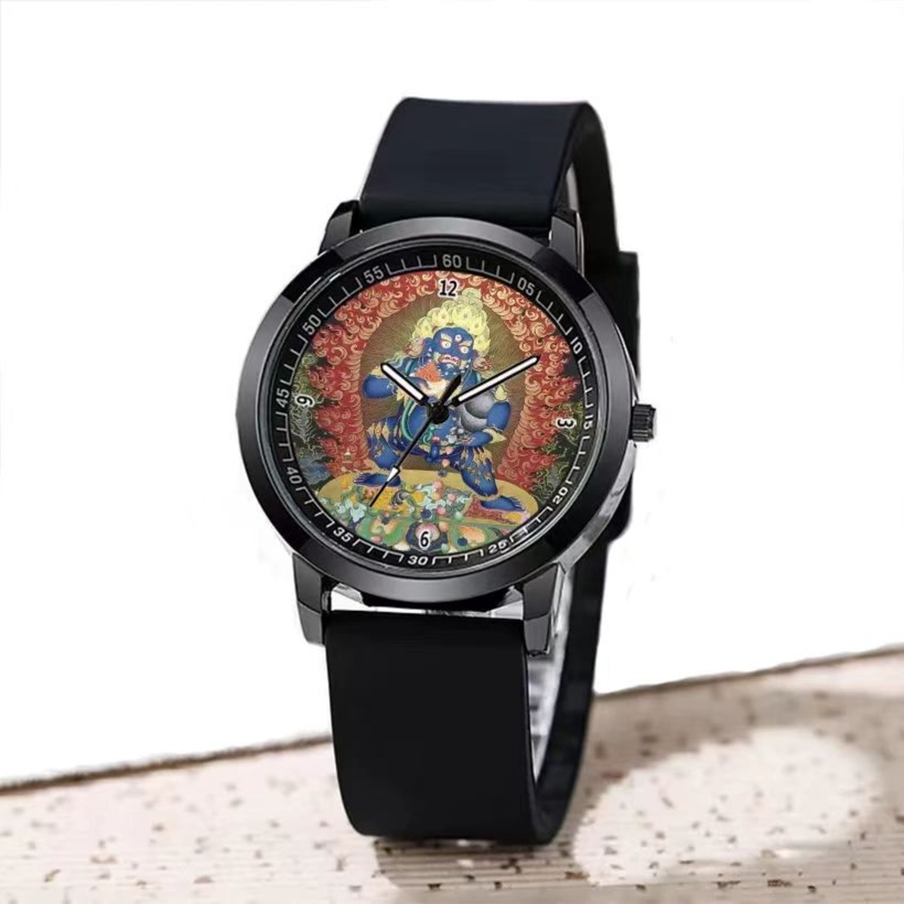 このチベットタンカ腕時計は、独自のデザインが目を引く魅力的なアイテムです。直径約3.5cmのコンパクトなサイズで、腕にフィットしやすく、日常使いにぴったり。クウォーツ式の正確な時間管理ができ、さらにタンカの美しいデザインが、持つ人の個性を引き立てます。