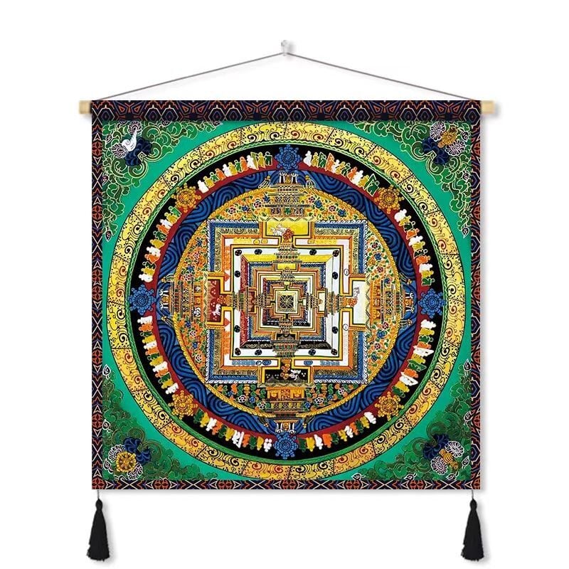チベットタンカ掛け軸は、その神秘的なデザインと豊かな色合いで、あなたの空間に特別な雰囲気をもたらします。サイズは60cm x 60cmで、木製スティック付きなので、飾りたい場所に簡単に掛けられます。チベットの文化を象徴するこの掛け軸は、インテリアとしてだけでなく、精神的な安らぎを提供するアイテムでもあります。